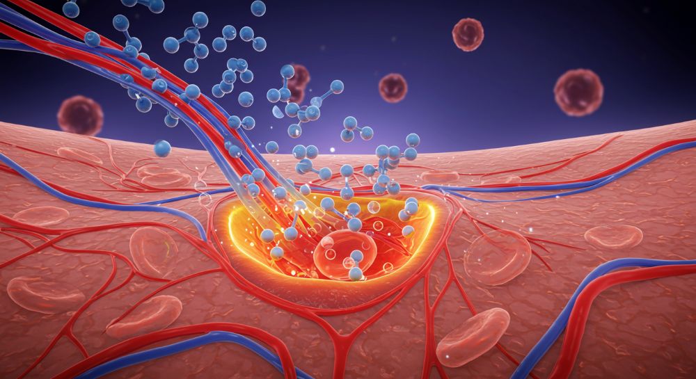 이러한 메커니즘을 통해 혈관이 좁아지거나 손상되어 혈류가 원활하지 않은 조직에도 충분한 양의 산소를 공급할 수 있게 되어, 조직의 괴사를 방지하고 빠른 상처 회복에 도움을 줍니다.