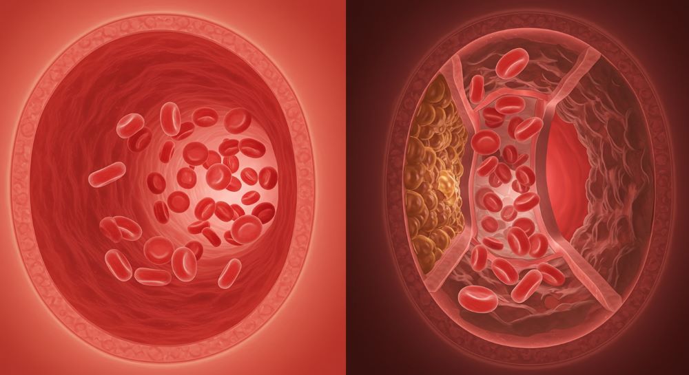 고지혈증은 시간이 지날수록 혈관 내벽에 플라크(지방 찌꺼기)가 쌓이며 혈관을 점점 좁게 만들고, 딱딱하게 굳게 합니다.