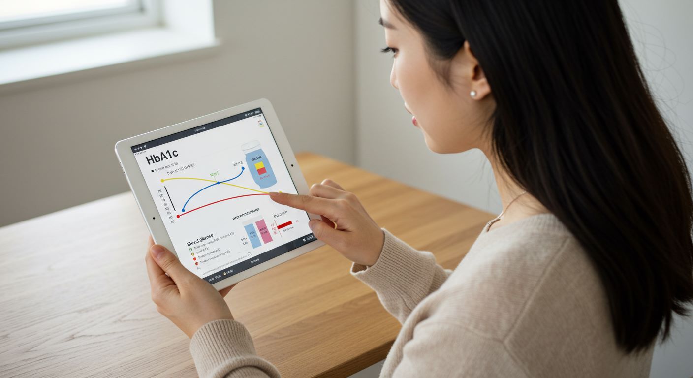 당화혈색소(HbA1c)는 혈액 속 포도당(혈당)이 적혈구 내 단백질인 혈색소와 결합한 비율을 나타내는 지표입니다.