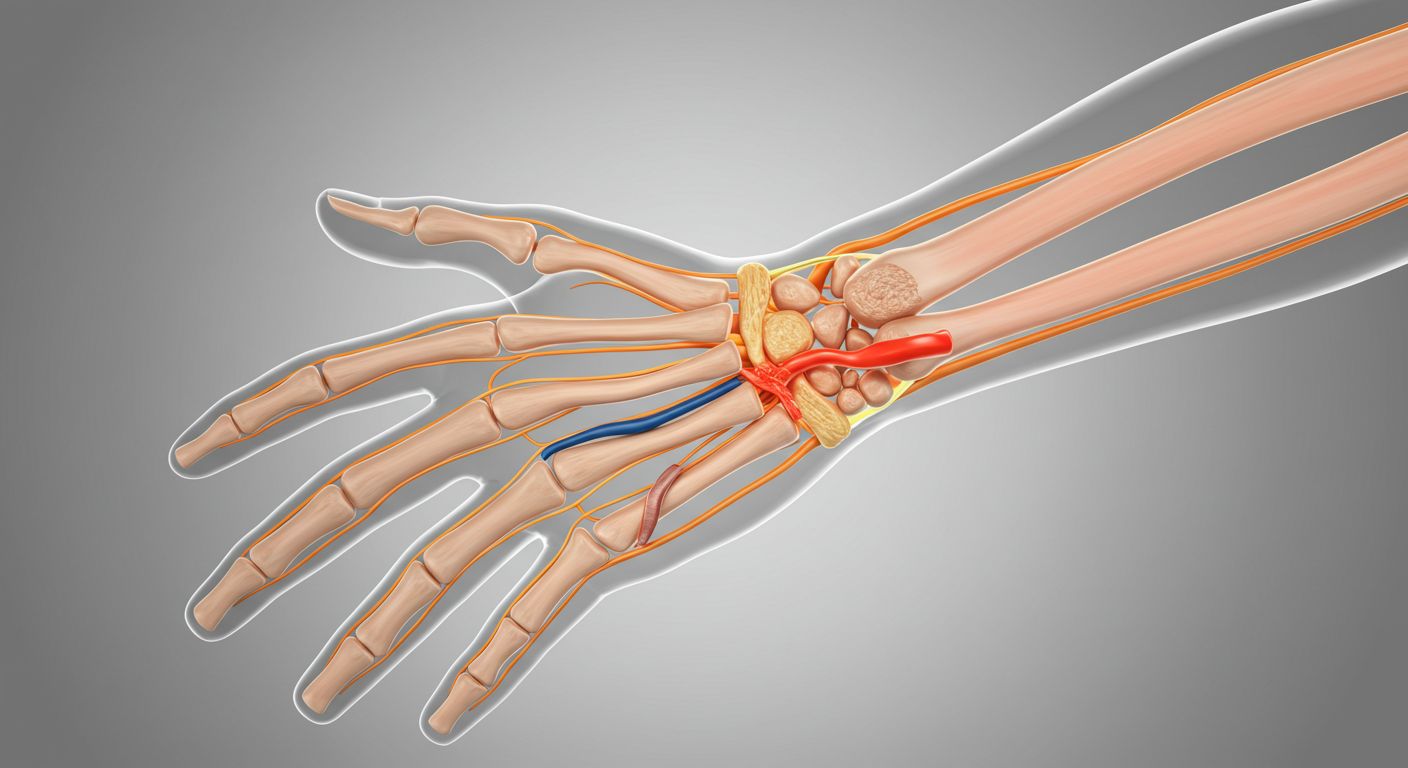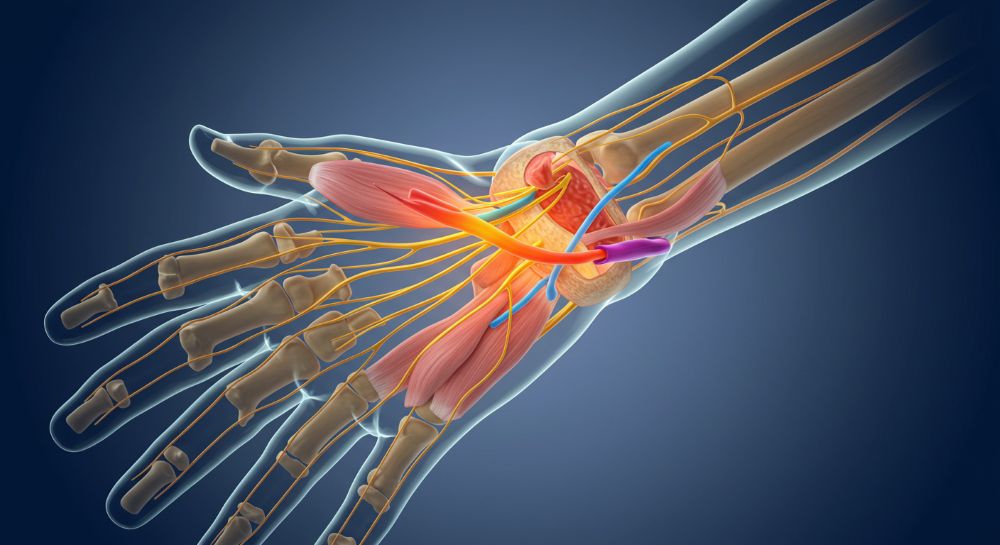손목을 통과하는 정중신경이 압박될 경우, 손가락의 저림이나 쥐나는 증상이 나타날 수 있습니다.