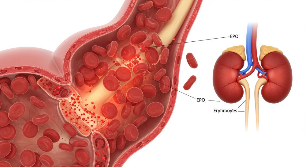 또한 신장에서 생성되는 적혈구 생성 호르몬의 부족으로 빈혈이 유발되며, 이는 더 깊은 피로와 쇠약감을 유발합니다.