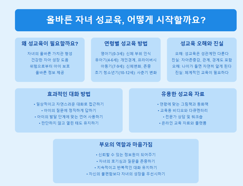 그래서 오늘은 올바른 자녀 성교육의 시작과 방법에 대해 이야기해보고자 합니다. 부모가 아이에게 성교육을 어떻게 자연스럽게 전달할 수 있는지, 그리고 자녀가 긍정적인 가치관을 형성하도록 돕는 방법까지 함께 알아보겠습니다. 부모와 자녀가 서로 믿고 이야기할 수 있는 방법, 그리고 성교육을 통해 자녀가 자신을 더 사랑하게 되는 방법을 함께 찾아보겠습니다.