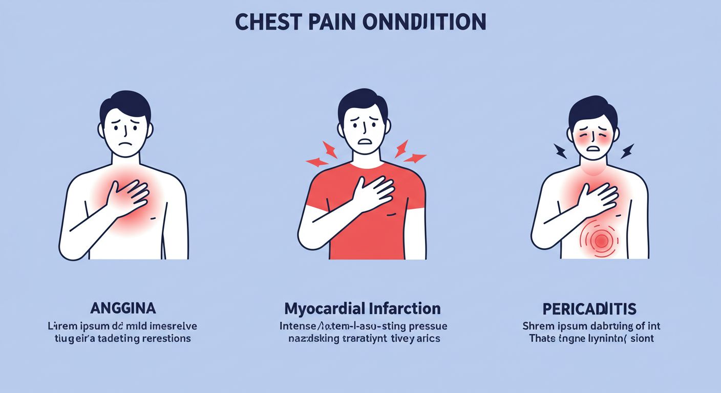 가슴 통증은 통증의 위치, 지속 시간, 양상, 연관 증상에 따라 원인을 추정할 수 있습니다.