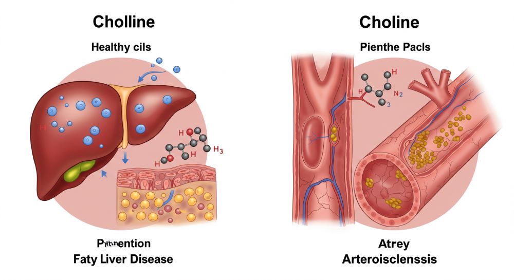 콜린은 지방간의 예방인자로도 활동하며, 동맥경화 예방의 효과가 있습니다. 또한 혈액순환을 원활하게 해주기 때문에 간경화와 동맥경화를 개선하고 지방간의 형성을 억제해줍니다. 이러한 효과는 현대인들의 대표적인 성인병 예방에 큰 도움이 됩니다.