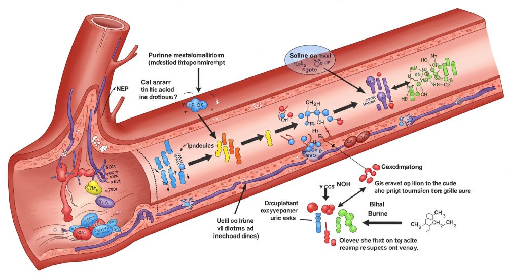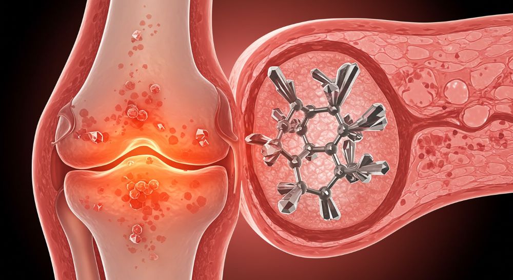 통풍은 요산(uric acid)이라는 노폐물이 몸에 과도하게 쌓여 관절에 염증을 유발하는 질환입니다. 요산은 음식 속에 들어 있는 퓨린(purine)이라는 물질이 체내에서 대사되며 생기는데, 이 요산이 정상적으로 배출되지 못하고 혈중 농도가 높아질 경우 결정 형태로 관절에 침착되며 염증을 유발합니다.