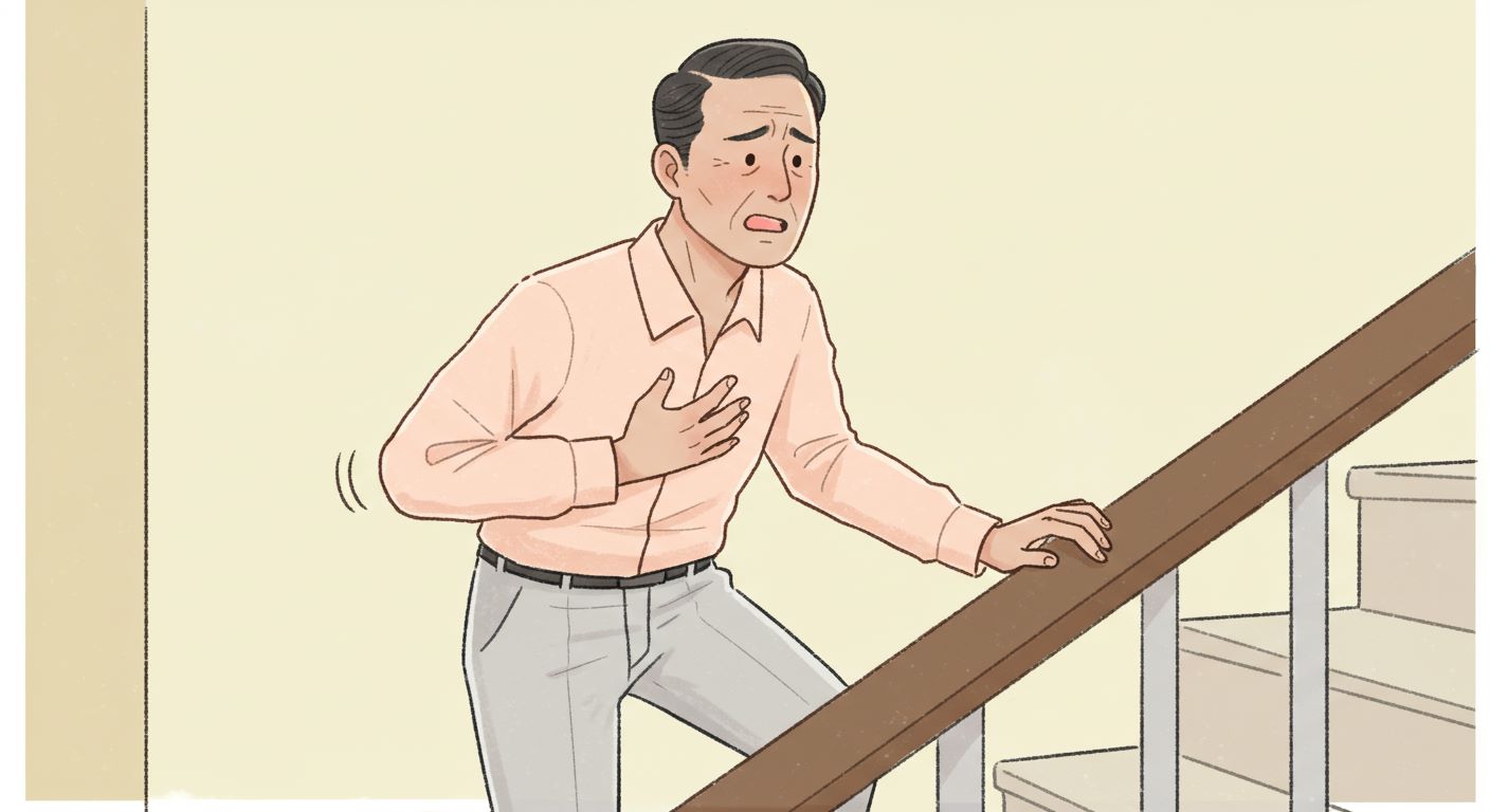 증상은 보통 계단 오르기, 무거운 물건 들기, 빠른 걸음, 추운 날씨, 과식 후와 같이 심장에 부담이 되는 상황에서 나타납니다. 휴식을 취하면 5분 이내 완화되는 것이 특징입니다.