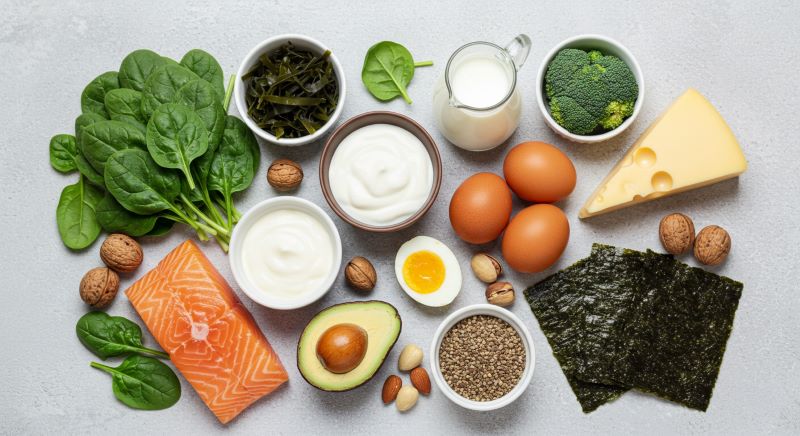 계란, 시금치, 견과류, 해조류, 유제품 등이 대표적입니다.